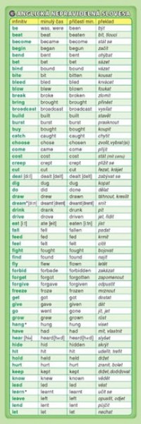 Záložka – Anglická nepravidelná slovesa